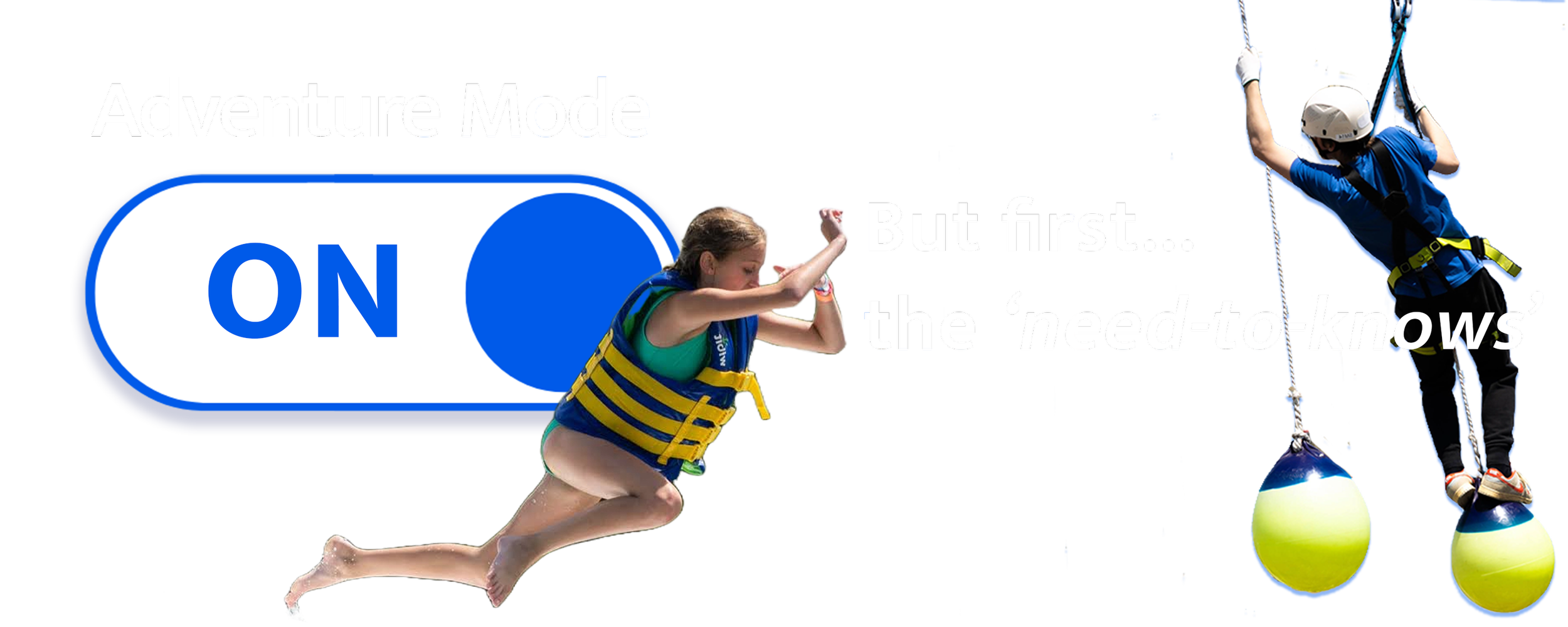 We strongly recommend that each person age 14 & younger has a buddy. Persons 15 and up may adventure solo.