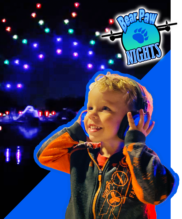 Enhance the experience with a Bear Paw Nights Fun Pack, which includes a glow sword or necklace, popcorn and a slushie for each guest to enjoy while watching the drones light up the sky.