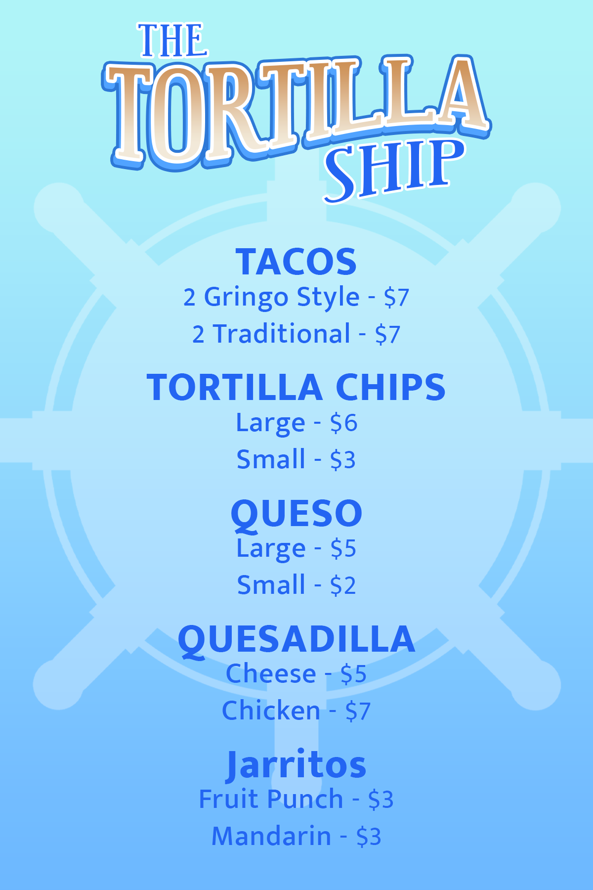 Grab a bite at The Tortilla Ship for tasty tacos and queso, or a savory/sweet option at The Treasure Chest.