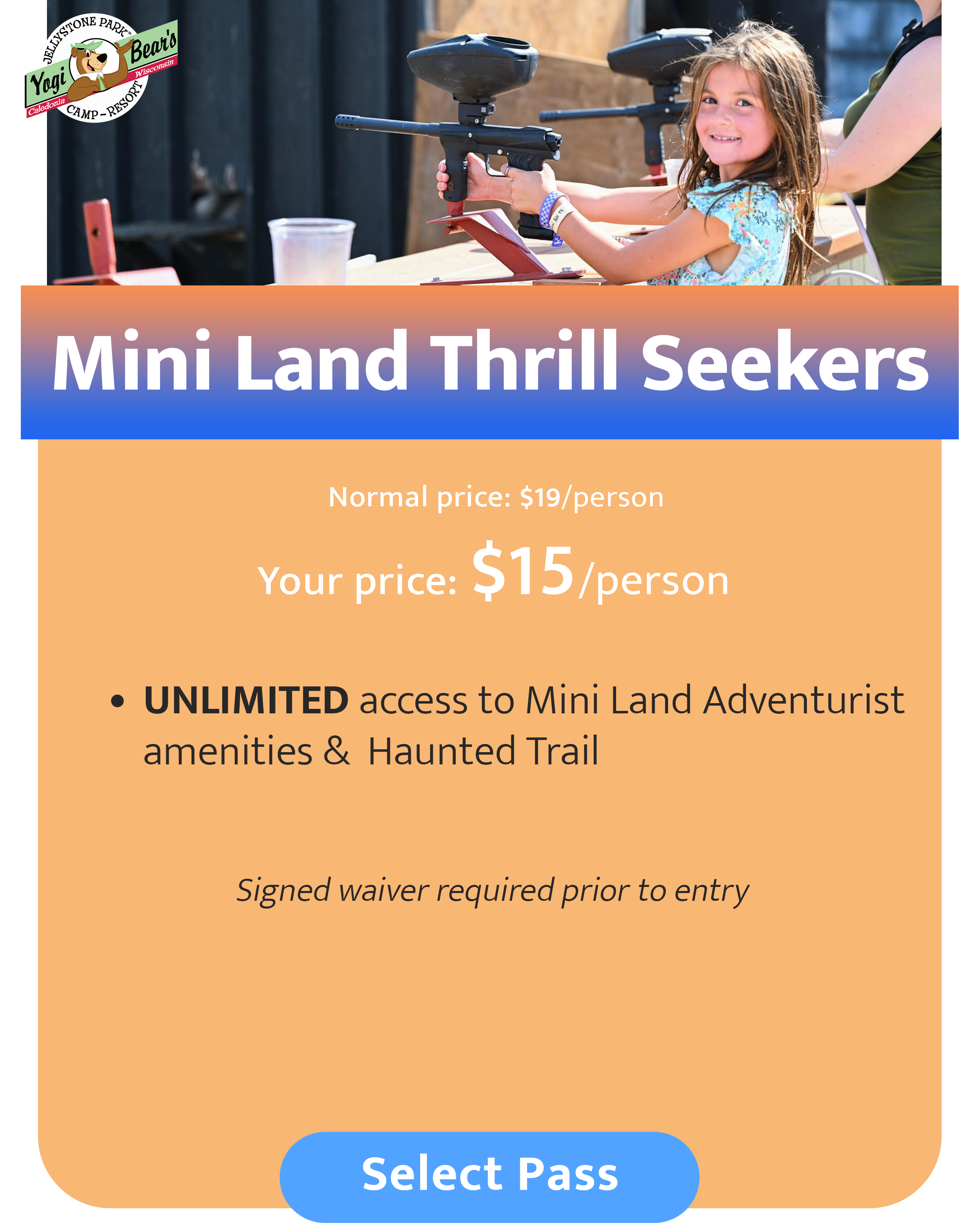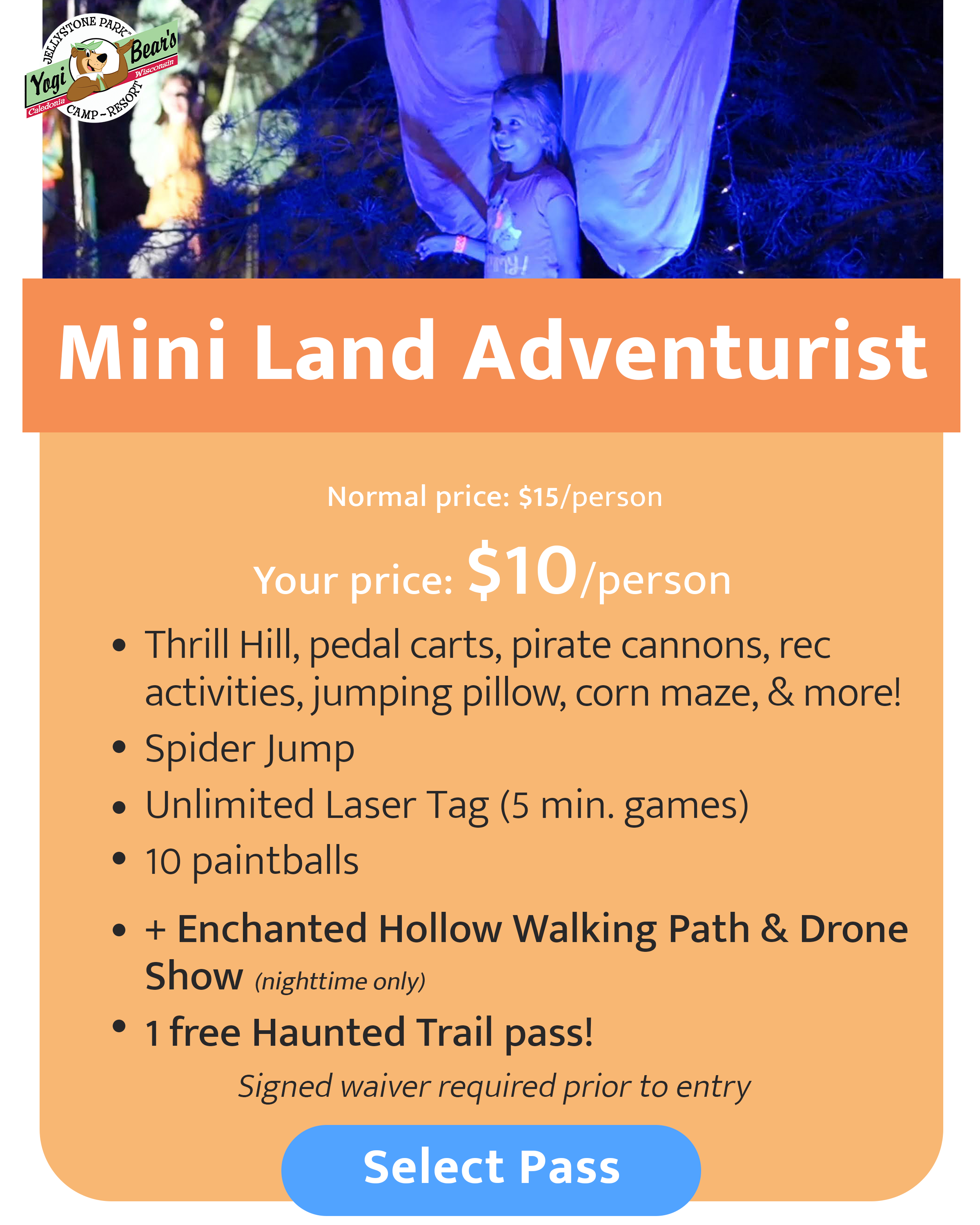 Camping at our neighboring property, Jellystone Park™ Caledonia? Then you get discounted tickets to some of our fall amenities! Check our your exclusive discounts below.*